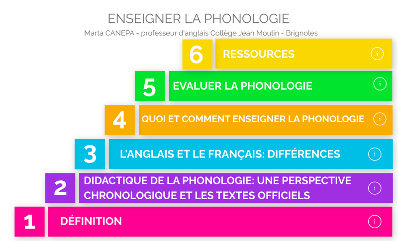 Mme Marta CANEPA du collège Jean MOULIN de Brignoles a conçu une présentation afin de donner des pistes pour l'enseignement de la phonologie en collège et au lycée. Vous pourrez trouver dans ce module des ressources didactiques et pédagogiques pour vous permettre d'intégrer la phonologie dans le cadre de votre enseignement. Cliquez sur l'image pour ...